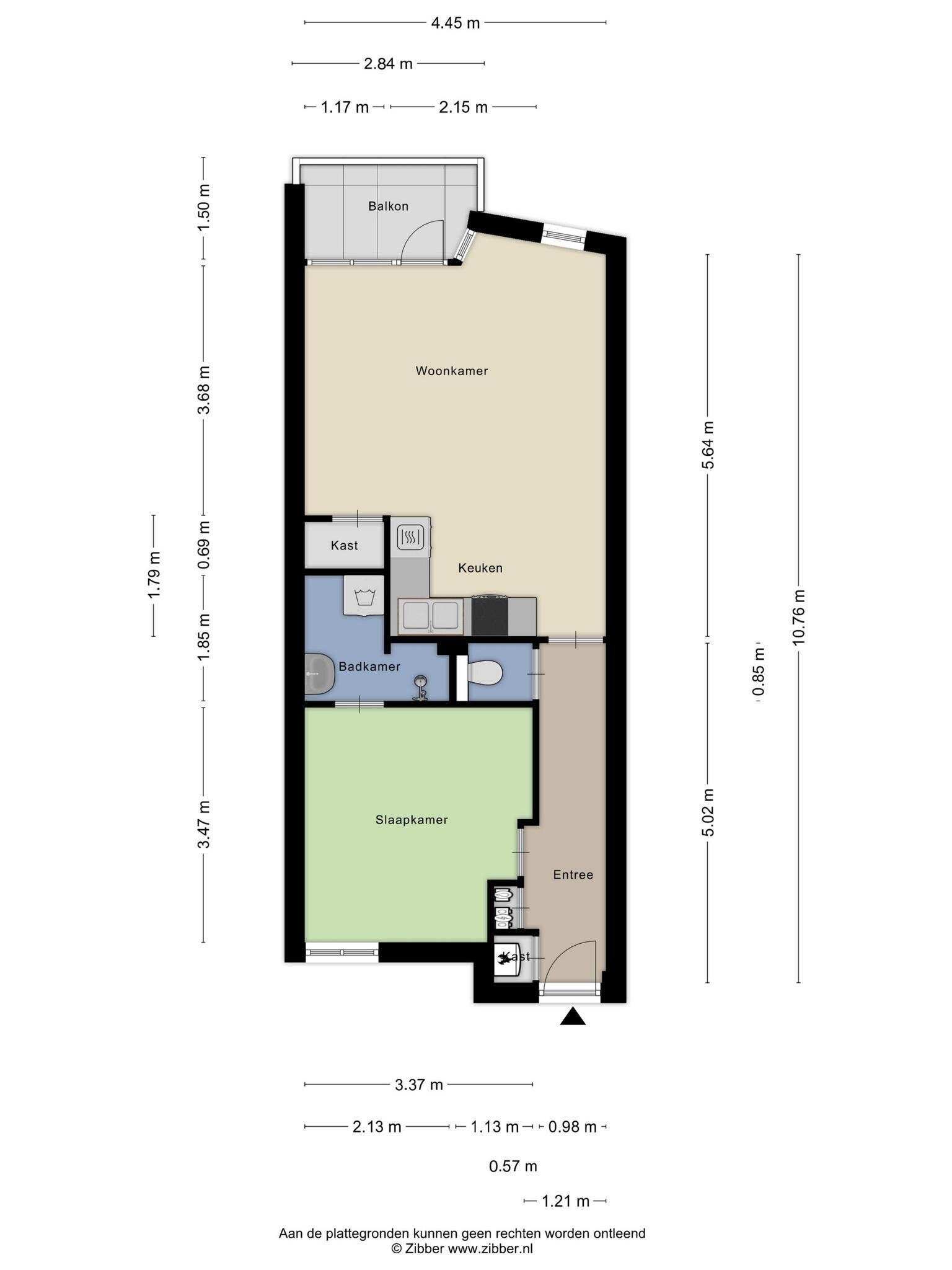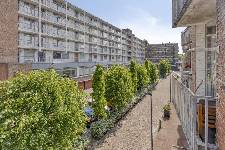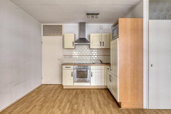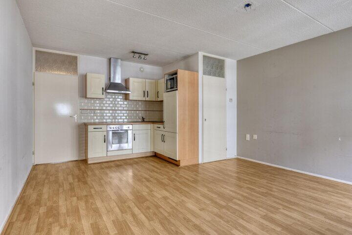 Entree, hal, gang, meterkast, ruimte met opstelling C.V.-combiketel, net zwevend toilet met fonteintje, lichte woonkamer met toegang naar het balkon op het zuidoosten, open keuken voorzien van diverse inbouwapparatuur (o.a. afzuigkap, oven, combi-magnetron (los), keramische kookplaat), één slaapkamer met toegang tot een nette badkamer met douche(cabine), wastafel(meubel), wasmachine-aansluiting en opstelling droger.